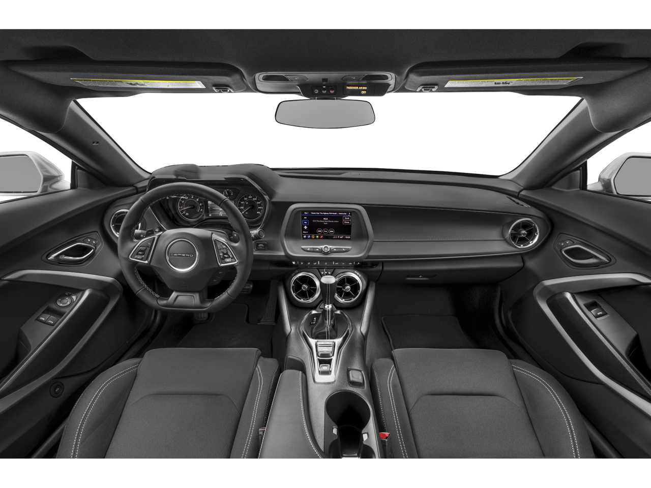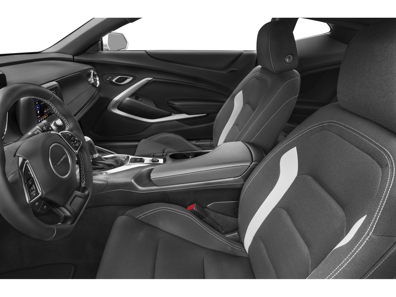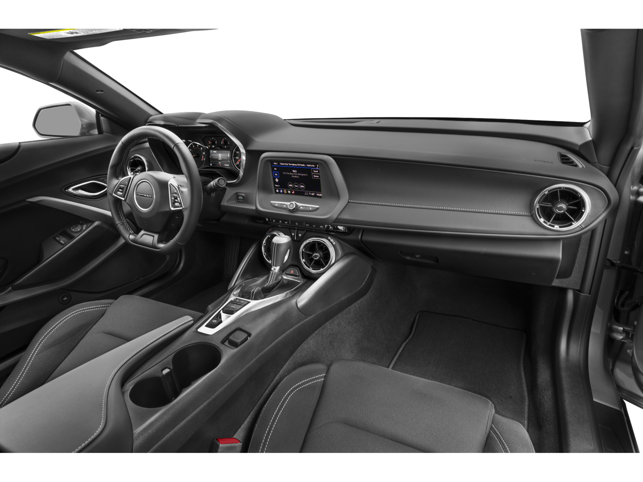 - Black interior with Ceramic White front seat inserts, door inserts and stitching on front seats, doors, steering wheel, shifter and center console