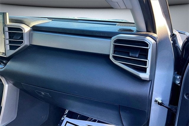 RECALL NOTICE: Some vehicles available for sale may have unrepaired safety recalls issued by the manufacturer. To check the recall status of any vehicle, please visit www.nhtsa.gov/recalls. PREMIUM AUDIO, PREMIUM WHEELS, SECURITY SYSTEM, Tundra Limited, 4D CrewMax, 3.4L V6, 10-Speed Automatic, 4WD, Silver, Black Leather, 20 Alloy Wheels, 3.31 Axle Ratio, 4-Wheel Disc Brakes, 8-Way Pwr Adjustable Heated/Ventilated Front Seats, 9 Speakers, ABS brakes, Air Conditioning, Alloy wheels, AM/FM radio: SiriusXM, Apple CarPlay/Android Auto, Auto High-beam Headlights, Auto-dimming door mirrors, Auto-dimming Rear-View mirror, Automatic temperature control, Brake assist, Bumpers: body-color, Delay-off headlights, Driver door bin, Driver vanity mirror, Dual front impact airbags, Dual front side impact airbags, Electronic Stability Control, Emergency communication system: Safety Connect (10-year trial), Exterior Parking Camera Rear, Front anti-roll bar, Front Bucket Seats, Front Center Armrest, Front dual zone A/C, Front fog lights, Front reading lights, Front wheel independent suspension, Fully automatic headlights, Garage door transmitter: HomeLink, Heated door mirrors, Heated front seats, Illuminated entry, Knee airbag, Leather Shift Knob, Low tire pressure warning, Memory seat, Navigation System, Occupant sensing airbag, Outside temperature display, Overhead airbag, Overhead console, Panic alarm, Passenger door bin, Passenger vanity mirror, Power door mirrors, Power driver seat, Power passenger seat, Power steering, Power windows, Radio data system, Radio: Audio Multimedia System, Rear reading lights, Rear seat center armrest, Rear window defroster, Remote keyless entry, Safety Connect, Security system, SofTex Seat Trim, Speed control, Speed-sensing steering, Split folding rear seat, Steering wheel mounted audio controls, Tachometer, Telescoping steering wheel, Tilt steering wheel, Traction control, Trip computer, Turn signal indicator mirrors, Variably intermittent wipers, Ventilated front seats, Voltmeter.